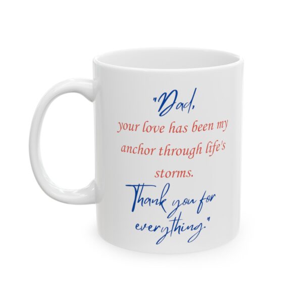 Ceramic White Mug, (11oz) With Special Message: “My Anchor Through Life’s Storms” for Father’s Day / Daddy’s / Papa’s / Dad’s Birthday Gift / Present